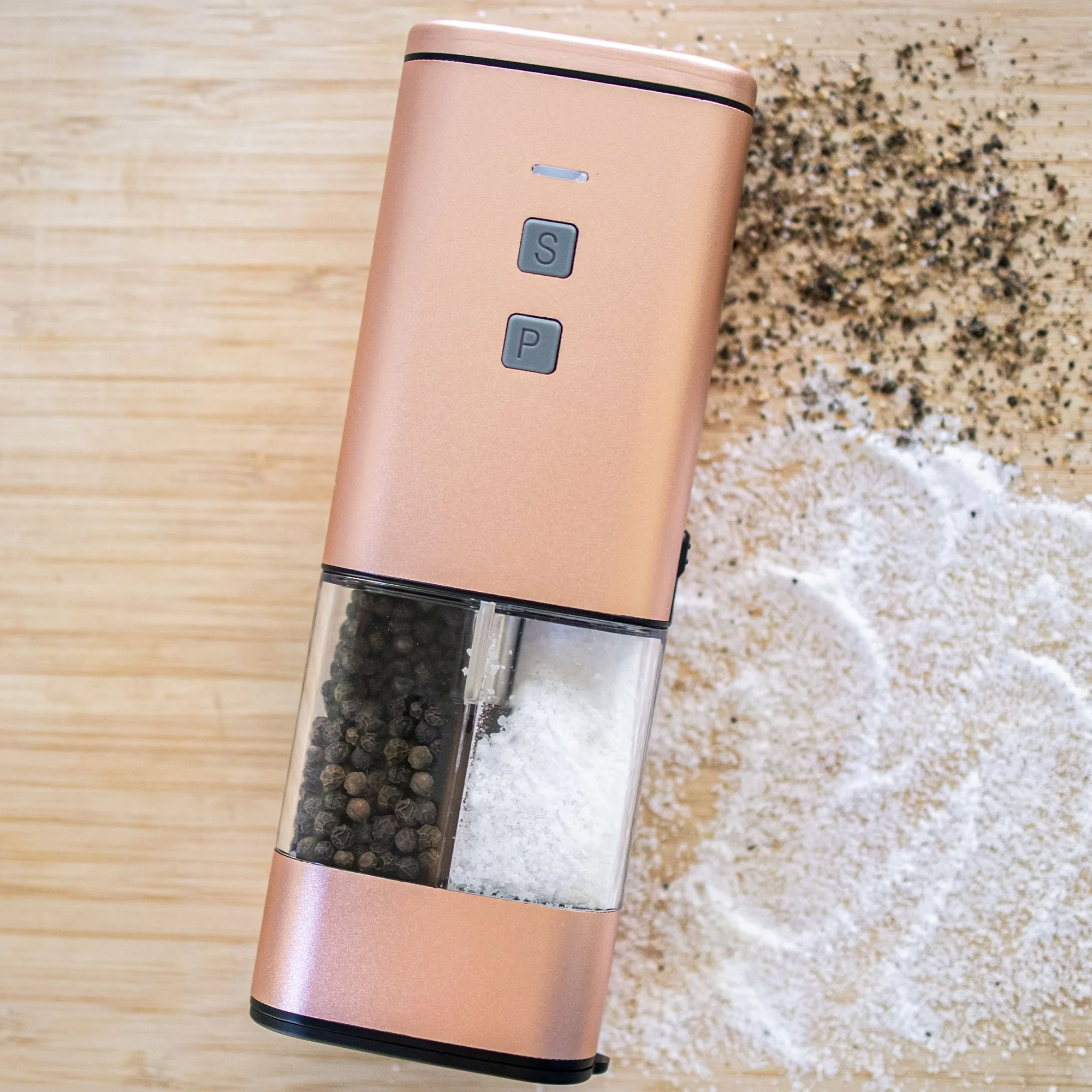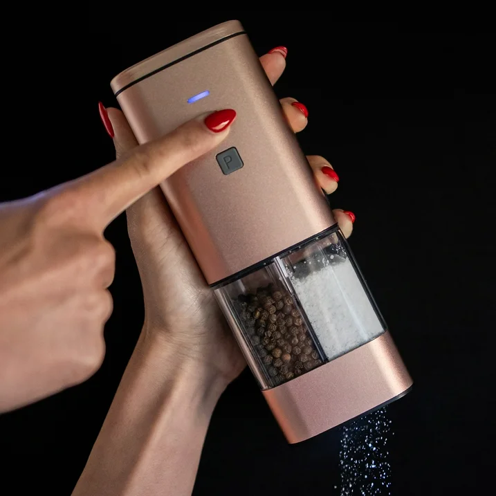 Transform your culinary experience with our 2-in-1 USB Rechargeable Salt and Pepper Grinder. This innovative kitchen gadget combines functionality, convenience, and style, making it a must-have for any modern kitchen. 2-in-1 Convenience: Our grinder features dual chambers for both salt and pepper, allowing you to season your dishes with just one tool. Simply twist to select your desired spice and grind away, saving both space and time in your kitchen. Eco-Friendly USB Rechargeable: Forget the hassle of constantly replacing batteries. Our salt and pepper grinder is equipped with a USB rechargeable battery that provides weeks of reliable power on a single charge. It’s a sustainable solution that’s as eco-friendly as it is convenient. Customizable Coarseness: Achieve the perfect seasoning every time with our adjustable coarseness setting. Whether you need a fine sprinkle or a coarse crunch, our grinder offers precise control to enhance your culinary creations. LED Light for Precision: Season your dishes perfectly, even in low-light conditions, with the built-in LED light that illuminates your food. This feature ensures you can see exactly how much spice you’re adding for optimal flavor. Premium Build Quality: Made from high-quality ABS, aluminum alloy, and ceramic, our grinder is designed to withstand daily use while maintaining a sleek and stylish appearance. The neutral color complements any kitchen decor, adding a touch of modern elegance to your space. Easy One-Handed Operation: Our grinder’s easy one-handed operation makes it simple to season your food while you cook. Keep one hand free for stirring, flipping, or mixing while you effortlessly add the perfect amount of seasoning. Stylish and Practical: With its sleek design and neutral color, our 2-in-1 USB Rechargeable Salt and Pepper Grinder is not just a functional kitchen tool, but also a stylish addition to your kitchen. It’s also a great gift for chefs, home cooks, and food enthusiasts. Versatile Kitchen Essential: Whether you’re preparing a gourmet dinner, a casual meal, or simply adding flavor to your favorite dishes, our grinder ensures perfect seasoning every time. Its versatility and convenience make it an essential tool in any kitchen. Upgrade your kitchen with our 2-in-1 USB Rechargeable Salt and Pepper Grinder and enjoy the perfect blend of convenience, sustainability, and style. Order now and take your culinary creations to the next level!
